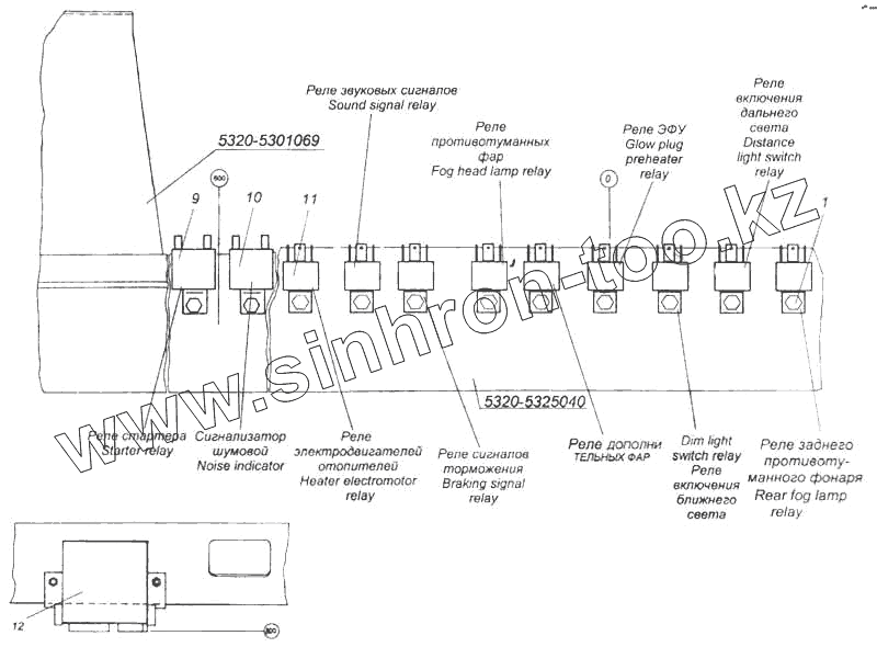 Каталог запасных частей к технике: Камский автозавод 5360. Установка реле