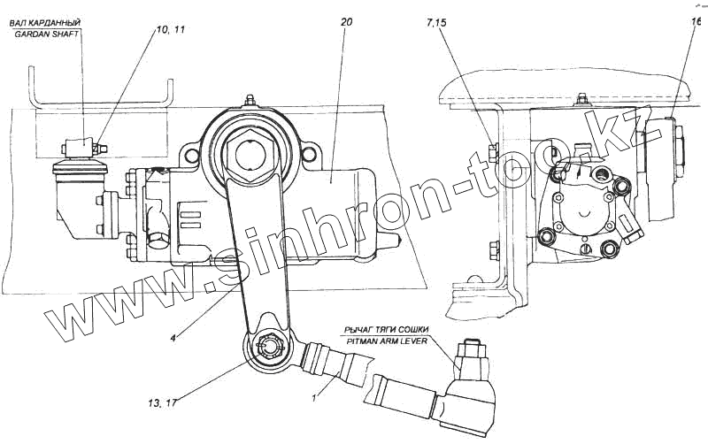 Каталог запасных частей к технике: Камский автозавод 5360. Установка рулевого механизма