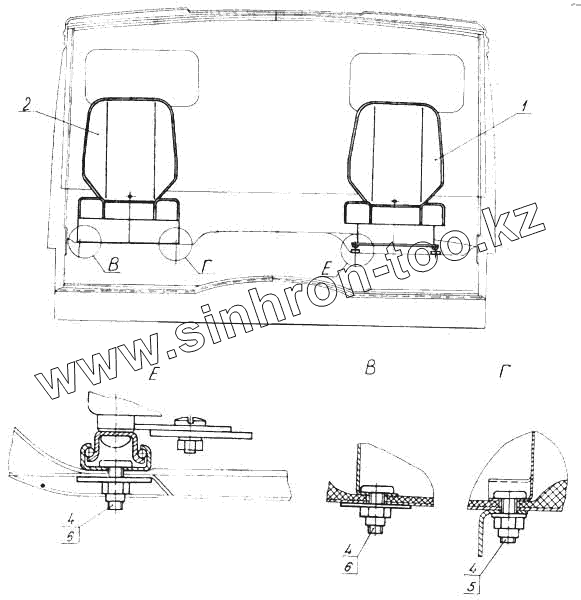 Каталог запасных частей к технике: Камский автозавод 5360. Установка сидений