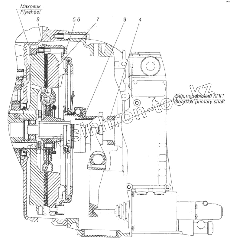 Каталог запасных частей к технике: Камский автозавод 5360. Установка сцепления
