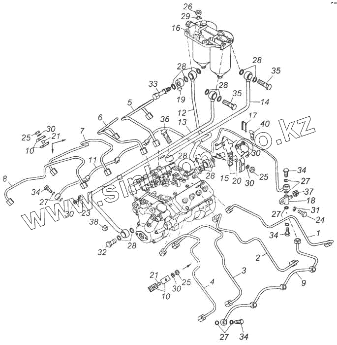 Каталог запасных частей к технике: Камский автозавод 5360. Установка топливопроводов