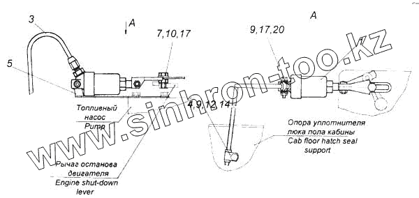 Каталог запасных частей к технике: Камский автозавод 5360. Установка цилиндра выключения подачи топлива