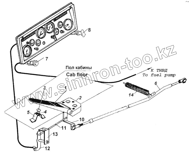 Каталог запасных частей к технике: Камский автозавод 5360. Установка управления подачи топлива