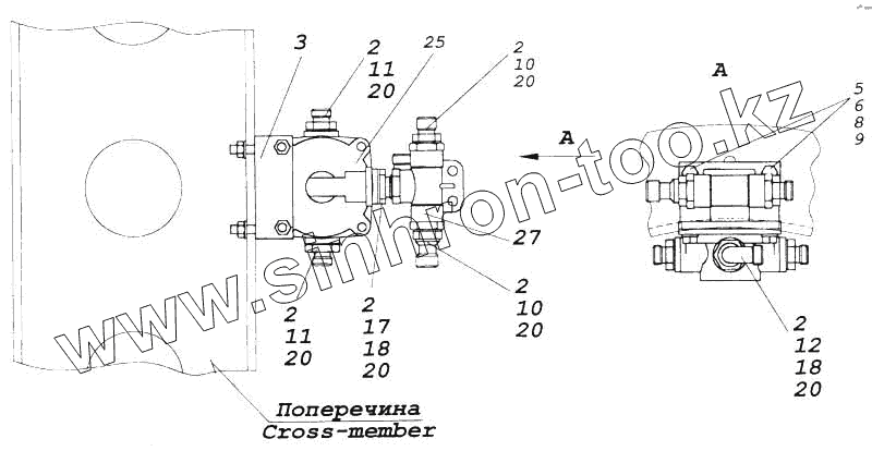 Каталог запасных частей к технике: Камский автозавод 5360. Установка ускорительного клапана