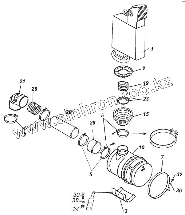 Каталог запасных частей к технике: Камский автозавод 5360. Установка воздушного фильтра