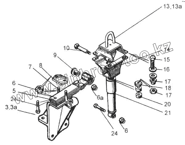 Каталог запасных частей к технике: Камский автозавод 5360. Установка задней подвески кабины