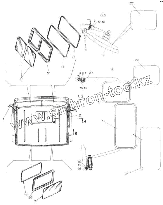 Каталог запасных частей к технике: Камский автозавод 5360. Установка зеркал заднего вида