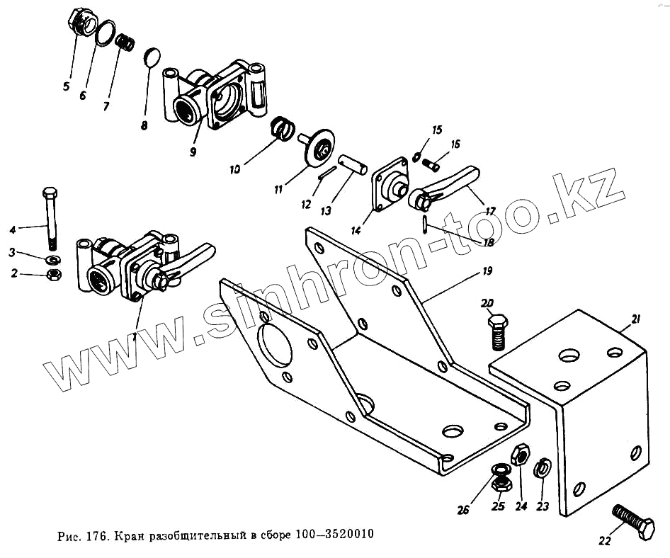 Каталог запасных частей к технике: Камский автозавод 5410. Кран разобщительный в сборе