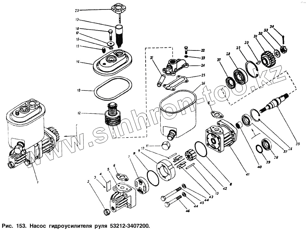 Каталог запасных частей к технике: Камский автозавод 5410. Насос гидроусилителя руля