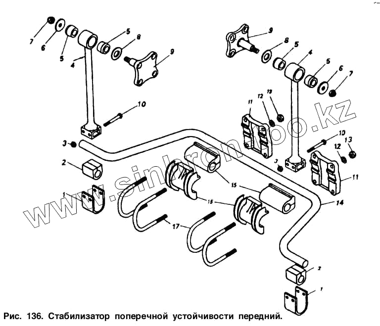 Каталог запасных частей к технике: Камский автозавод 5410. Стабилизатор поперечной устойчивости передний