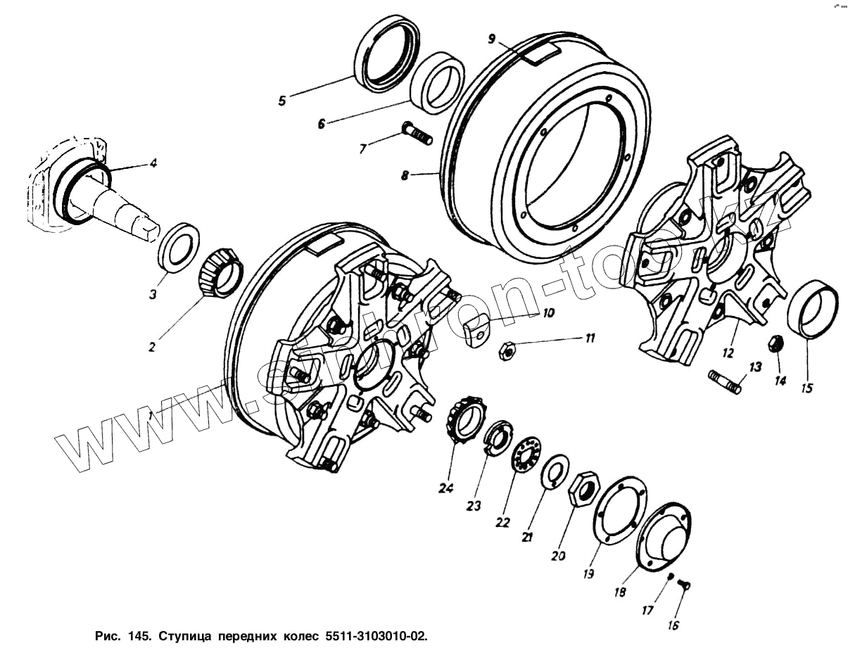 Каталог запасных частей к технике: Камский автозавод 5410. Ступица передних колес