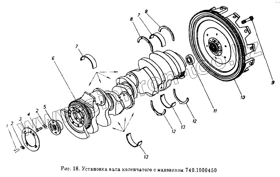 Каталог запасных частей к технике: Камский автозавод 5410. Установка вала коленчатого с маховиком