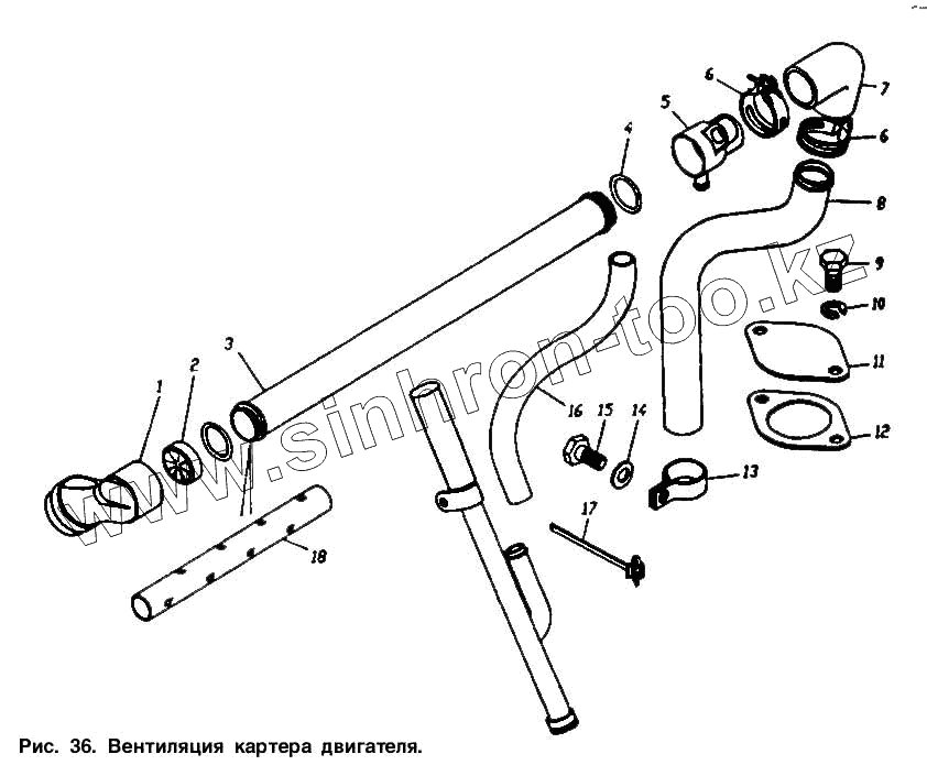 Каталог запасных частей к технике: Камский автозавод 5410. Вентиляция картера двигателя