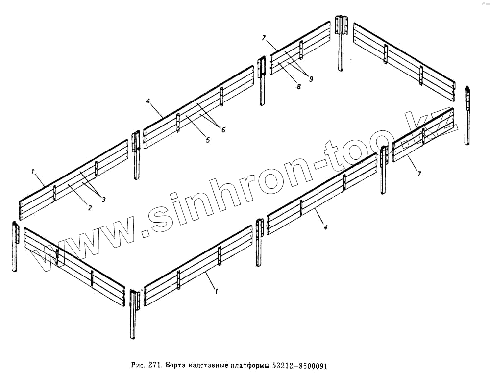 Каталог запасных частей к технике: Камский автозавод 54112. Борта платформы надставные 53212-8500091