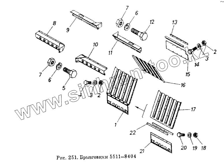 Каталог запасных частей к технике: Камский автозавод 54112. Брызговики