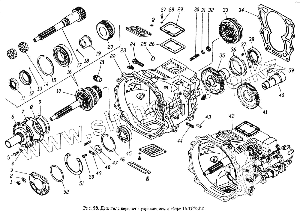 Каталог запасных частей к технике: Камский автозавод 54112. Делитель передач с управлением в сборе