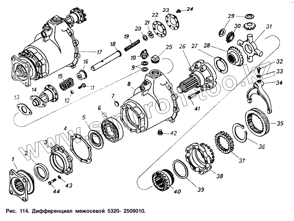 Каталог запасных частей к технике: Камский автозавод 54112. Дифференциал межосевой