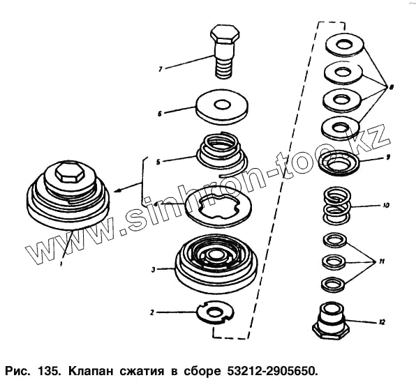Каталог запасных частей к технике: Камский автозавод 54112. Клапан сжатия в сборе