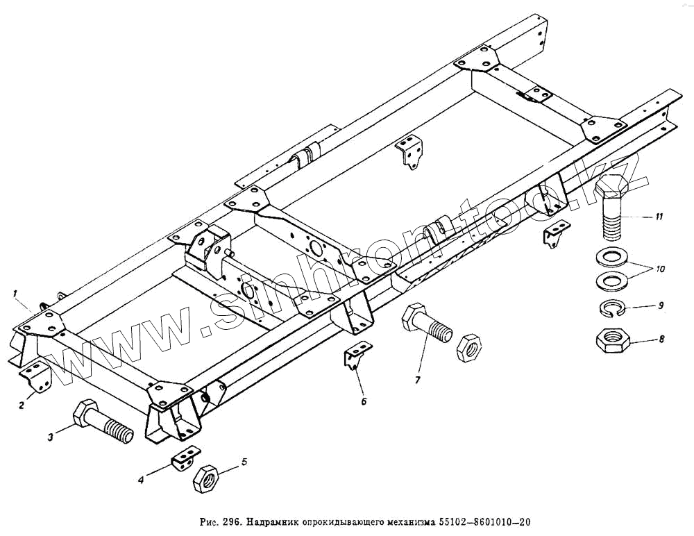 Каталог запасных частей к технике: Камский автозавод 54112. Надрамник опрокидывающего механизма 55102-8601010-20