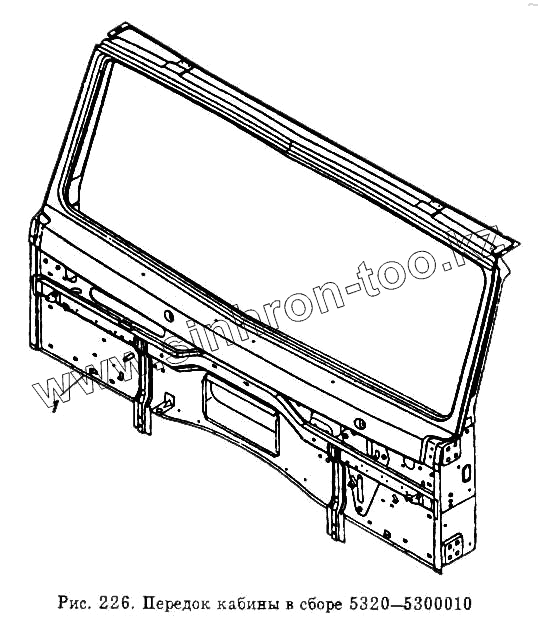 Каталог запасных частей к технике: Камский автозавод 54112. Передок кабины в сборе