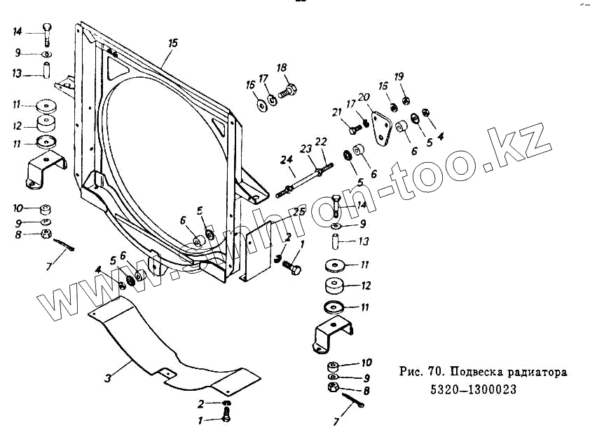 Каталог запасных частей к технике: Камский автозавод 54112. Подвеска радиатора