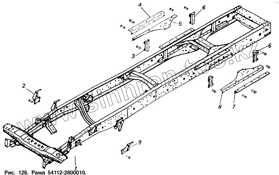 Каталог запасных частей к технике: Камский автозавод 54112. Рама 54112-2800010