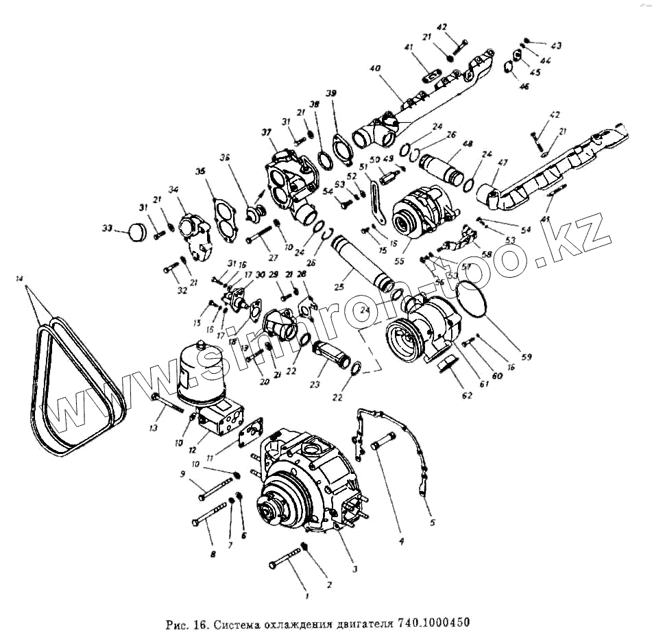 Каталог запасных частей к технике: Камский автозавод 54112. Система охлаждения двигателя