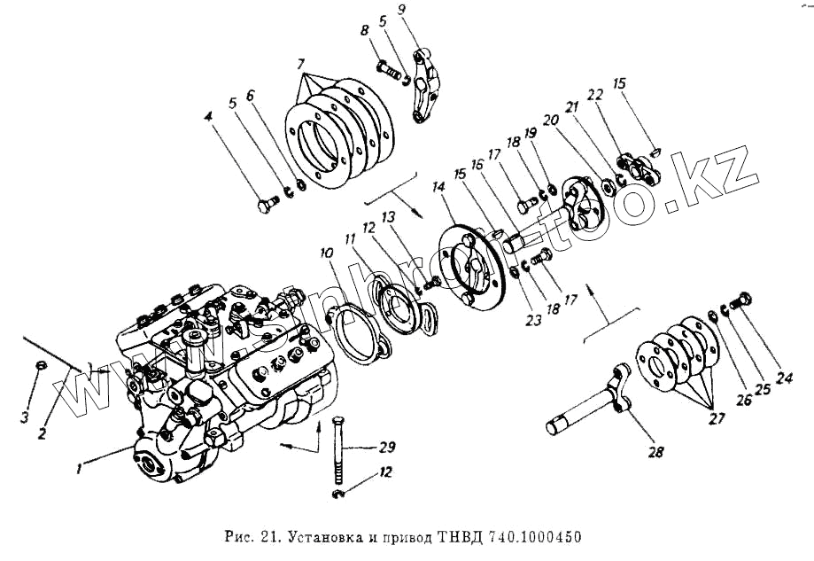 Каталог запасных частей к технике: Камский автозавод 54112. Установка и привод ТНВД