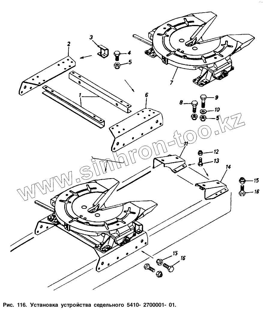 Каталог запасных частей к технике: Камский автозавод 54112. Установка устройства седельного 5410-2700001-01