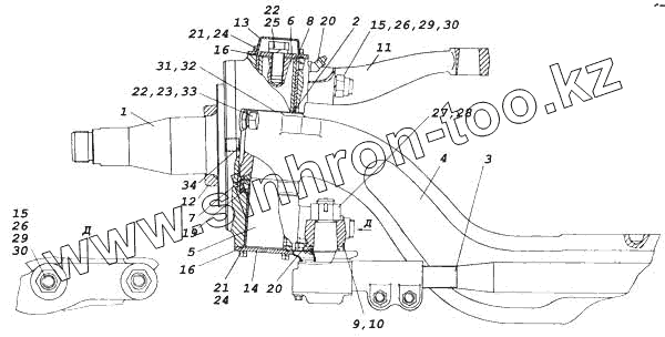 Каталог запасных частей к технике: Камский автозавод 5460. Ось передняя в сборе
