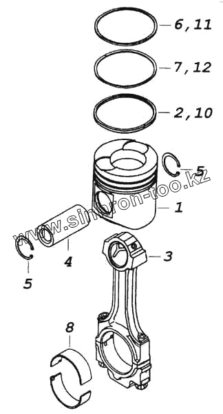 Каталог запасных частей к технике: Камский автозавод 5460. Поршень с шатуном и кольцами