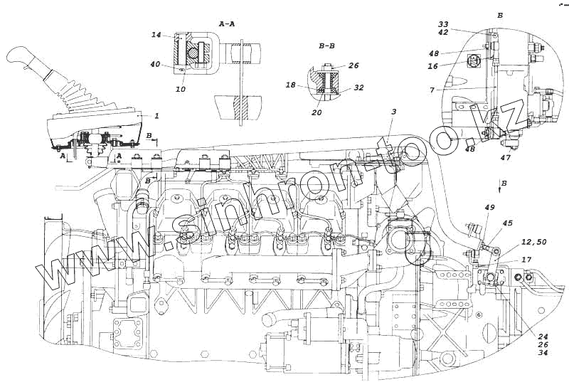 Каталог запасных частей к технике: Камский автозавод 5460. Привод управления механизмом переключения передач