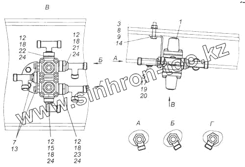 Каталог запасных частей к технике: Камский автозавод 5460. Установка четырехконтурного защитного клапана