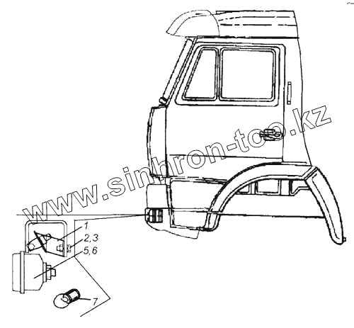 Каталог запасных частей к технике: Камский автозавод 5460. Установка фар дополнительных и противотуманных