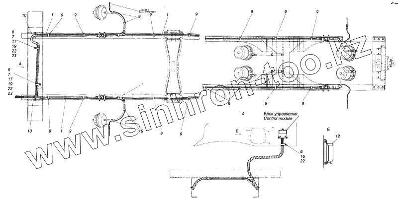 Каталог запасных частей к технике: Камский автозавод 5460. Установка кабелей АБС