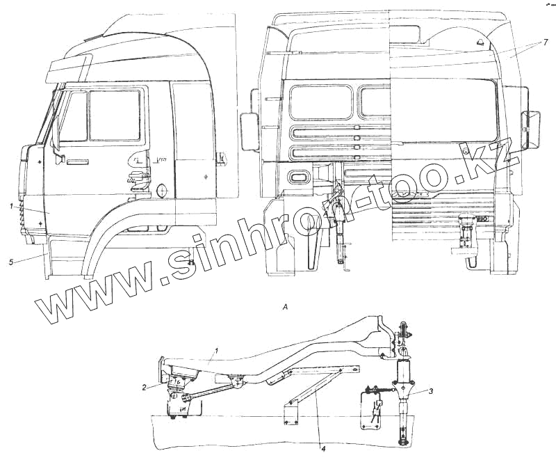 Каталог запасных частей к технике: Камский автозавод 5460. Установка кабины с оперением