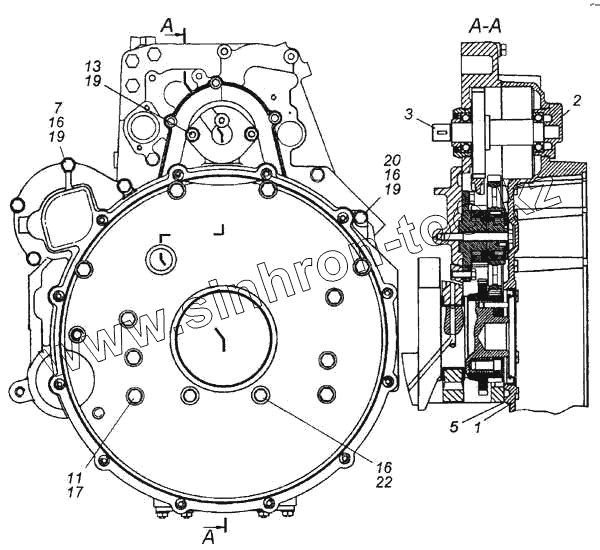 Каталог запасных частей к технике: Камский автозавод 5460. Установка картера маховика