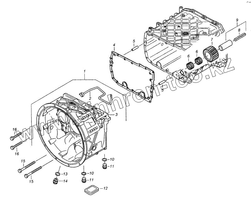 Каталог запасных частей к технике: Камский автозавод 5460. Установка картера сцепления