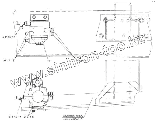 Каталог запасных частей к технике: Камский автозавод 5460. Установка клапана управления тормозами прицепа