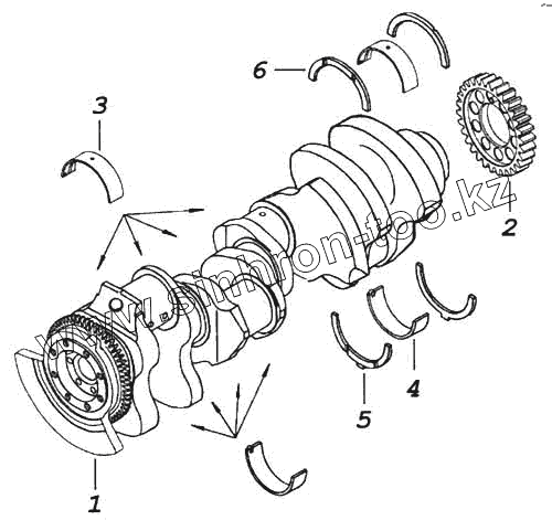 Каталог запасных частей к технике: Камский автозавод 5460. Установка коленчатого вала