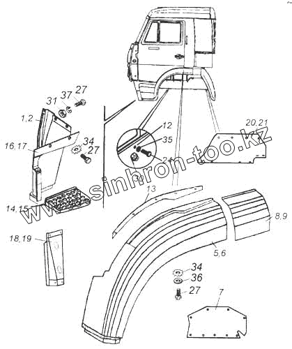 Каталог запасных частей к технике: Камский автозавод 5460. Установка оперения кабины