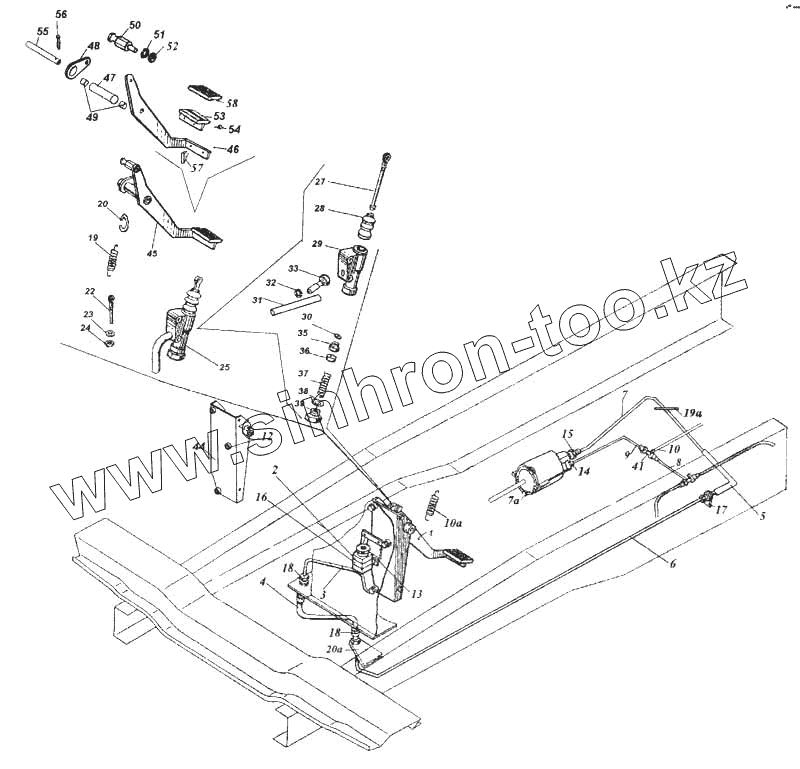 Каталог запасных частей к технике: Камский автозавод 5460. Установка педали и привода выключения сцепления