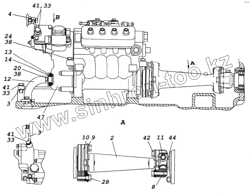 Каталог запасных частей к технике: Камский автозавод 5460. Установка привода ТНВД
