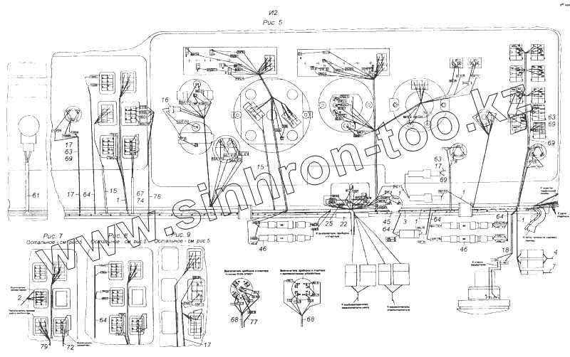 Каталог запасных частей к технике: Камский автозавод 5460. Установка проводов на кабине