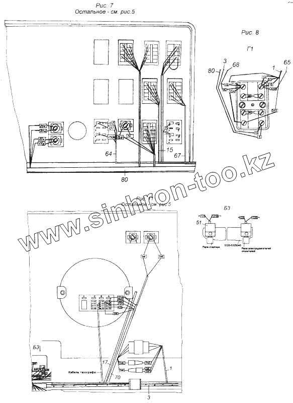 Каталог запасных частей к технике: Камский автозавод 5460. Установка проводов на кабине