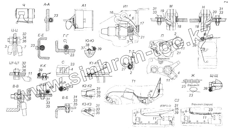 Каталог запасных частей к технике: Камский автозавод 5460. Установка проводов на шасси