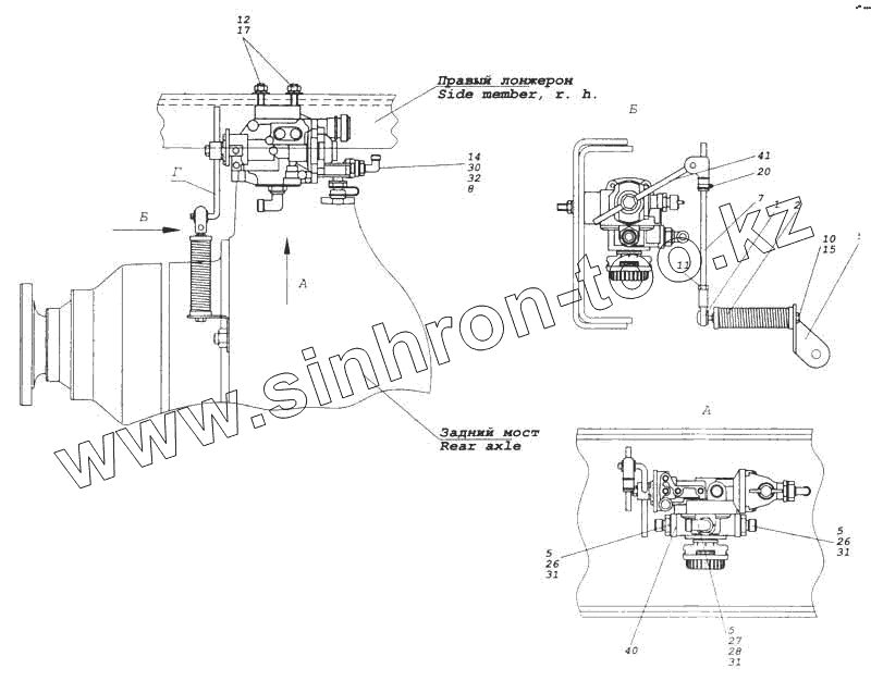 Каталог запасных частей к технике: Камский автозавод 5460. Установка регулятора тормозных сил