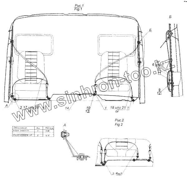 Каталог запасных частей к технике: Камский автозавод 5460. Установка ремней безопасности