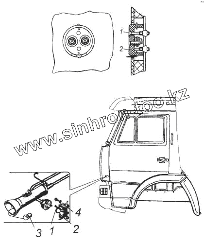 Каталог запасных частей к технике: Камский автозавод 5460. Установка розетки переносной лампы