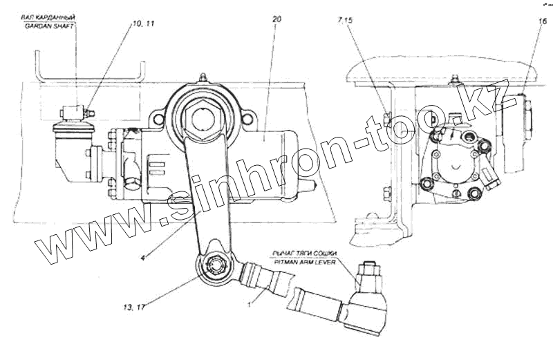 Каталог запасных частей к технике: Камский автозавод 5460. Установка рулевого механизма